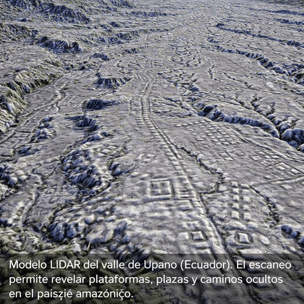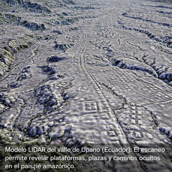 El descubrimiento de la red de asentamientos del valle de Upano fue posible gracias a una tecnología que revolucionó la arqueología: LiDAR (Light Detection and Ranging). Este sistema utiliza sensores láser instalados en aviones o drones que emiten millones de pulsos hacia el suelo. Parte de esos pulsos atraviesan la vegetación y se reflejan en el terreno. Al procesar digitalmente la información obtenida, se puede eliminar virtualmente el bosque y reconstruir la topografía real del paisaje.